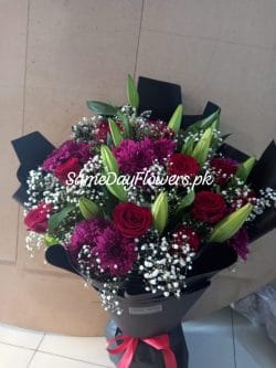 If flowers are unavailable, we’ll add an alternate per our substitution policy. Actual product design may vary from the above picture. This design is hand-arranged and delivered by a Same Day Flowers team member. We offer same-day delivery services for most Lahore, Islamabad, Rawalpindi & Karachi products.